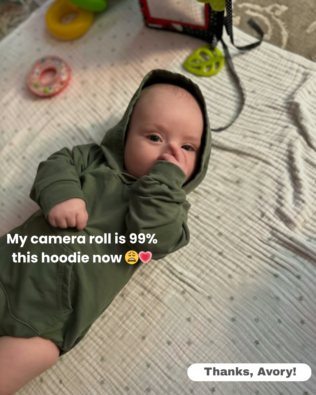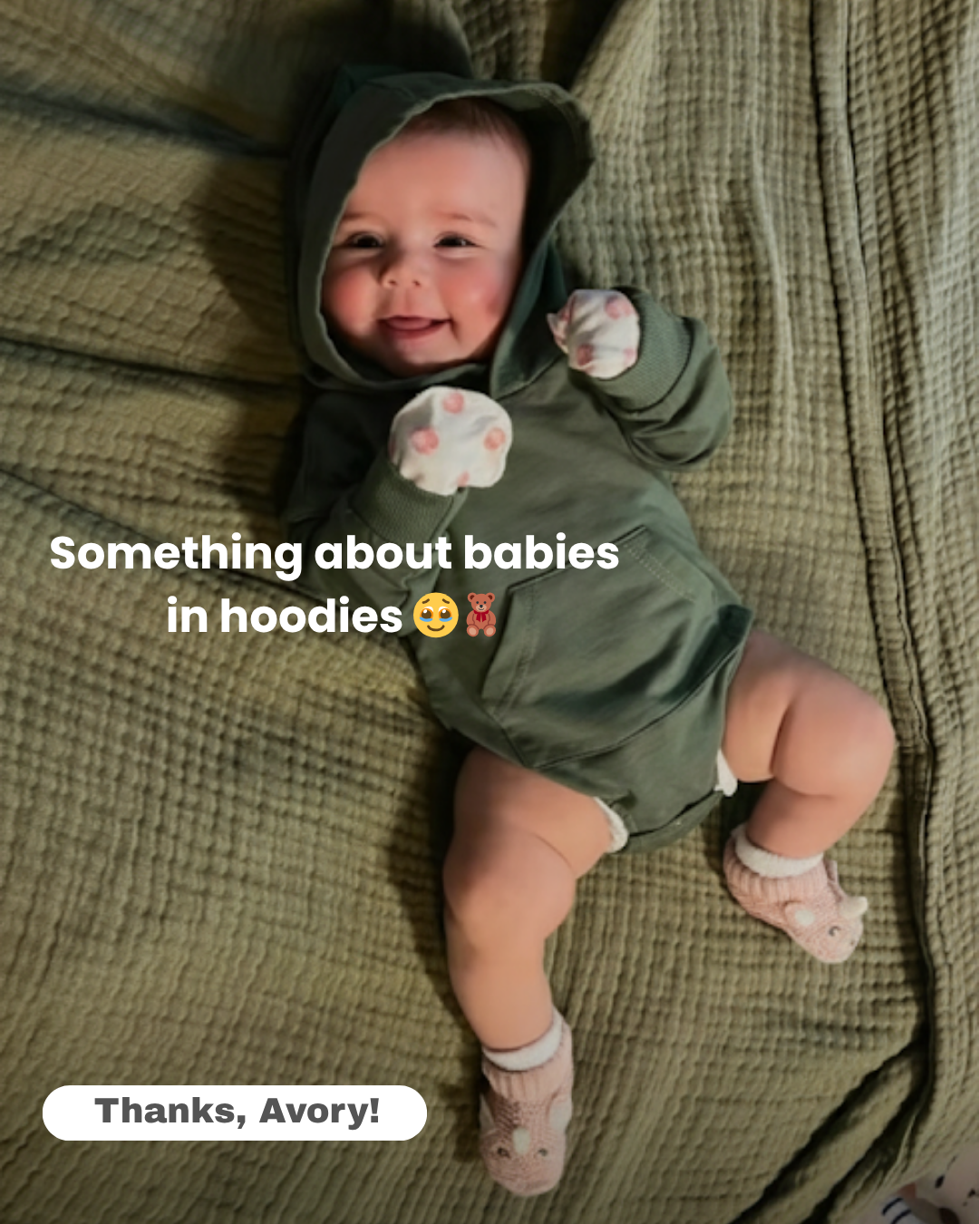 Every stitch was created with comfort in mind — buttery-soft fabric that keeps your baby warm, cozy, and camera-ready for every cuddle. Moms call it “the hoodie hug they never want to take off.”