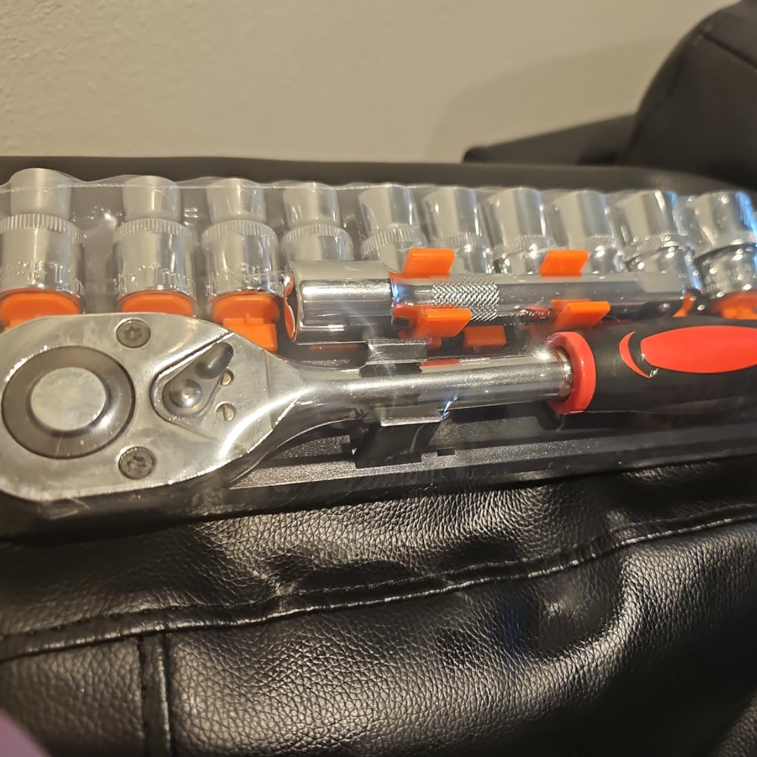 “This socket set honestly surprised me. The deep wells reach bolts perfectly, the ratchet feels strong, and every size fits tight with zero slipping or rounding issues.”